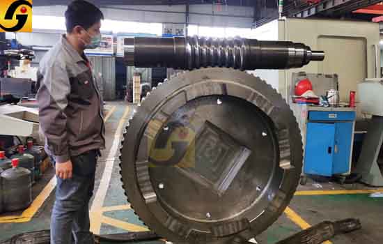 中心距800二次包絡(luò)蝸輪蝸桿副為客戶定制款,這種蝸輪蝸桿副平面二次包絡(luò)齒型,蝸桿為42CrMo,蝸輪為球墨鑄鐵材質(zhì),這種材質(zhì)的組合具有平面二次包絡(luò)蝸輪蝸桿副的特點,大中心距與多齒接觸,增大了接觸面積,運轉(zhuǎn)時承載能力大、使用壽命長,同時噪音比較低,對于客戶定制的蝸輪蝸桿副德州金宇技術(shù)部及時跟進,確保產(chǎn)品質(zhì)量。